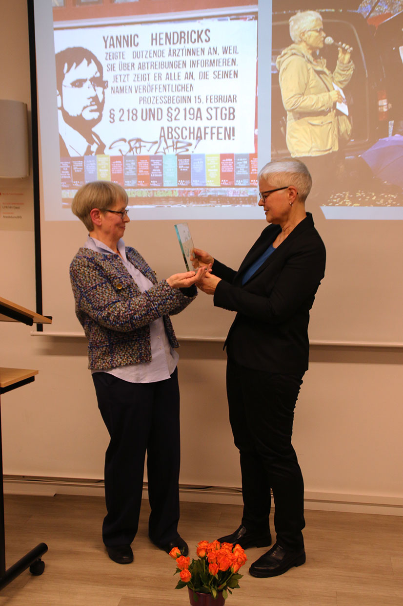 Sowohl in der Laudatio als auch in der Rede der Preisträgerin wird deutlich: Der Kampf ist nicht vorbei. Die Frage der körperlichen Selbstbestimmung ist untrennbar mit Demokratie, sozialer Gerechtigkeit und Menschenrechten verbunden. Beide Reden lassen sich hier nachlesen.