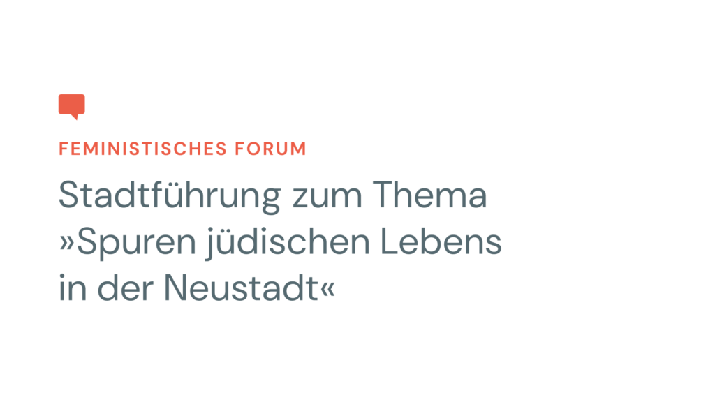 Karin Schönewolf vom Frauen*bildungszentrum DENKtRÄUME wird uns auf eine Stadtführung zum Thema »Spuren jüdischen Lebens in der Neustadt« mitnehmen.